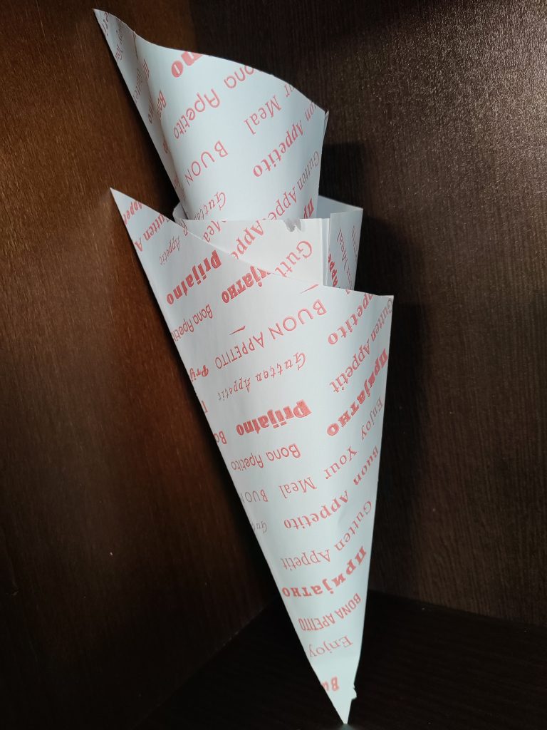 Naši proizvodi Kese Radimo kese standardnih dimenzija i to:osnovnih širina kese 10cm, 13cm, 14cm, 16cm, 18cm,osnovnih dužina 20cm, 28 cm i 30 cmhamburger kese – 19cm*19cmdimenzije se mogu prilagoditi potrebama kupca u slučaju malih odstupanjaimamo štampu sa jednom ili dve bojeKese su proizvedene od kvalitetnog papira poreklom iz EU i posedujemo Sertifikat o ispravnosti Kraft kese Natron kese Kese za hamburger Kartonske kutije Radimo kartonske kutije i to:roštiljska kutija za 1kg dimenzija 240*170*45mmroštiljska kutija za 2kg dimenzija 300*200*50mmroštiljska kutija za 3kg dimenzija 300*200*70mmkutije za pizzuKutije su od 400g hromo kartona, oblozene iznutra. Pored osnovne namene mogu se koristiti kao kutije za pečenje, pecivo, ketering… Kutije za roštilj Kutije za picu Pekarski papir Radimo pekarski papir i to:tabak 30*40cm Ostala galanterija Radimo ostalu papirnu galanteriju i to:podloge za pizzuubrusesalvetefišeci za palačinkekese za dostavuposude za soseve Fišeci za palačinke Kese za dostavu Posude za soseve